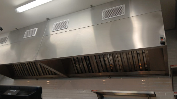Coifa IndustrialFabricada em aço inoxidável aisi 430 ou 304, com dimensões personalizadas, filtros removíveis e dutos de exaustão.